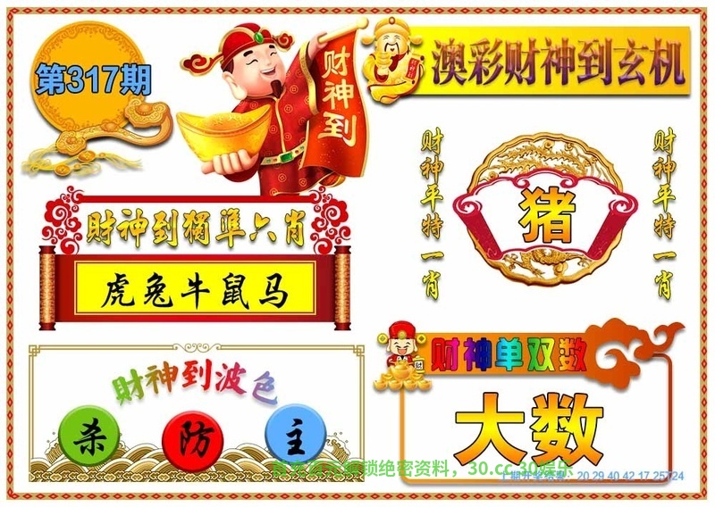 317期独家六合玄机:蓝绿今期发庄家,虎猴今期是特肖,蛇鼠一窝定发家,今期生肖牛马狗 幸运波段:18-31 幸运生肖:鼠猪牛虎马蛇 |